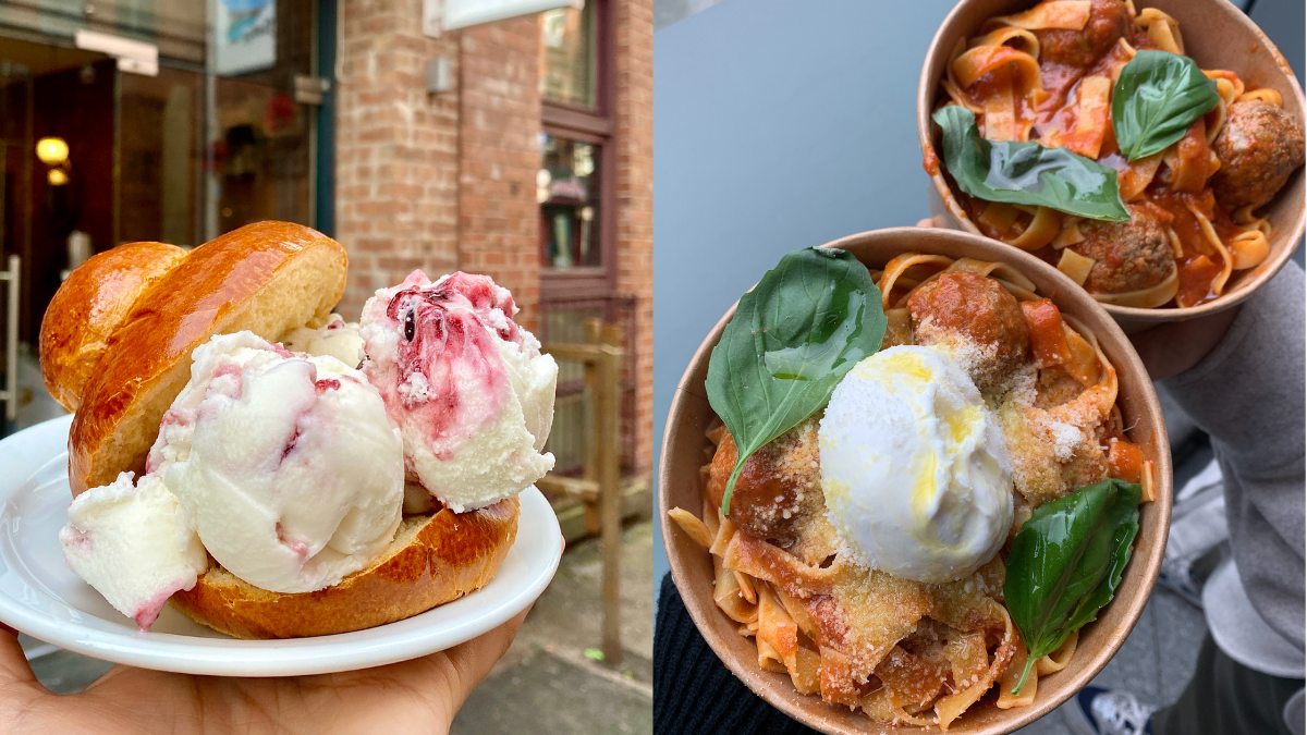 Coming towards the end of its growing season, beetroot is so much more than pre-cut crinkled slices, packaged in a glass jar with seriously strong vinegar. At Higher Ground’s kitchen takeover at Ducie Street, they’re serving it sliced with salted blueberry, marjoram and goats curd. A fresh dish with strong and well-balanced flavours. Menu’s change regularly so check their socials for what you can expect!