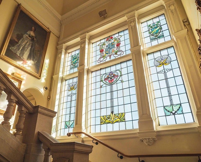 The grand design includes original mosaic floors and a stone staircase. The stained glass throughout the building is by the Manchester based artist Walter J Pearce and is largely still the original glass.