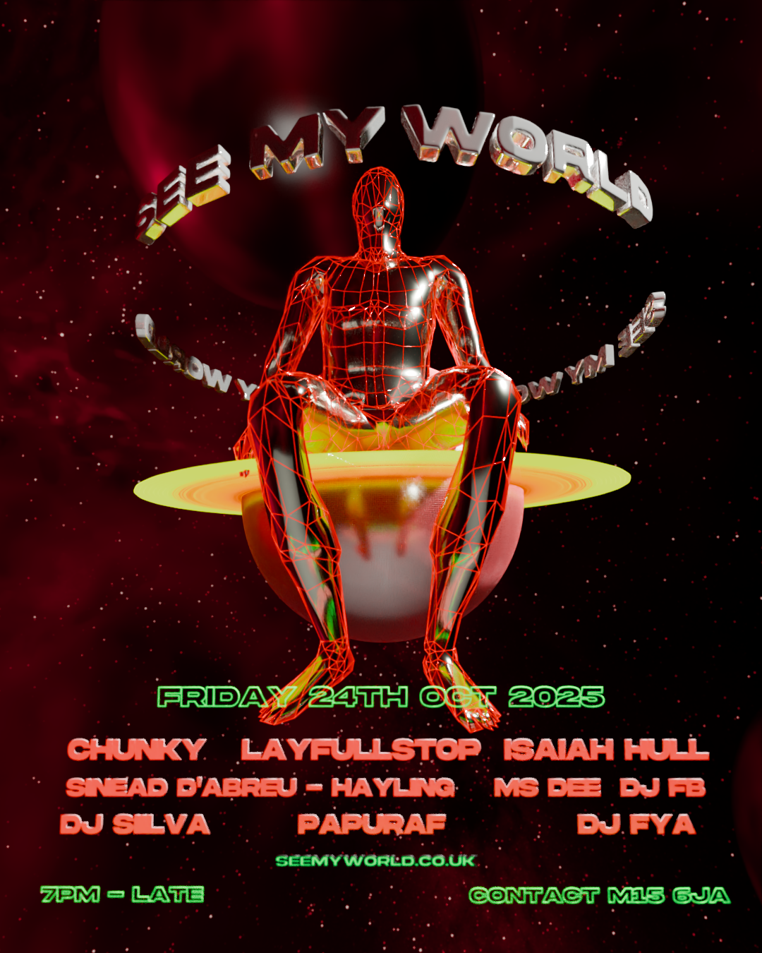 Finally, SEE MY WORLD closes with a one-night festival at Contact on Friday 24 October – a celebration of Manchester’s Pan-African music legacy past and present. The line-up leans into both established names and newer voices: expect sets from CHUNKY, LayFullstop and Isaiah Hull alongside Sinead D’Abreu-Hayling, DJ Silva, Ms Dee, Papuraf, DJ Fya and DJ FB. It’s billed as an immersive evening that flaunts the sound culture rooted in diaspora communities here – a reminder that Manchester’s global reputation for music isn’t just about indie guitars or rave heritage.