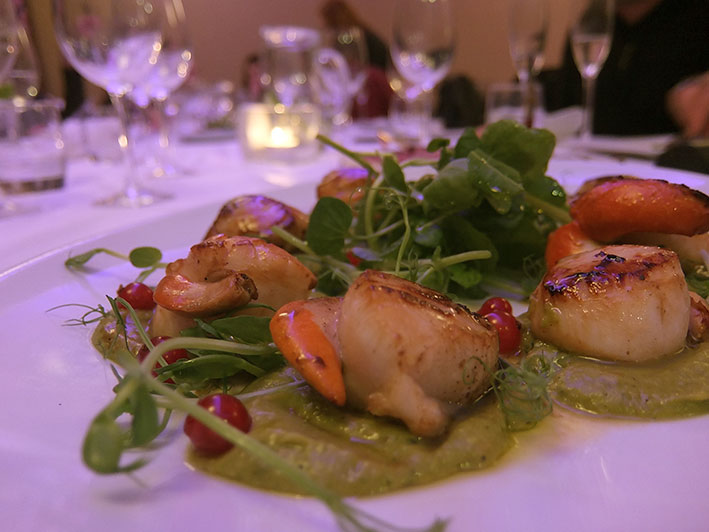 To do things properly (not at all because of pure greediness) we squeeze in a pasta course to share in the shape of hand-made butternut squash ravioli with sauteed cavelo nero, sage and almonds. The delicate crunch of the almonds alongside slightly al dente pasta is a winner and we’re left wishing we’d maybe had more. No time for regrets though as we move on to mains and I go for roast lamb rump on a courgette, aubergine and tomato galette with salsa verde dressing. The meat comes pink in the middle and I match with the Don David Argentinian Malbec, a proper treat. Pan roast duck breast with carrot and star anise puree, pickled radicchio and red wine jus is similarly impressive and we share sides of french beans with shallots and rosemary and garlic roast potatoes.