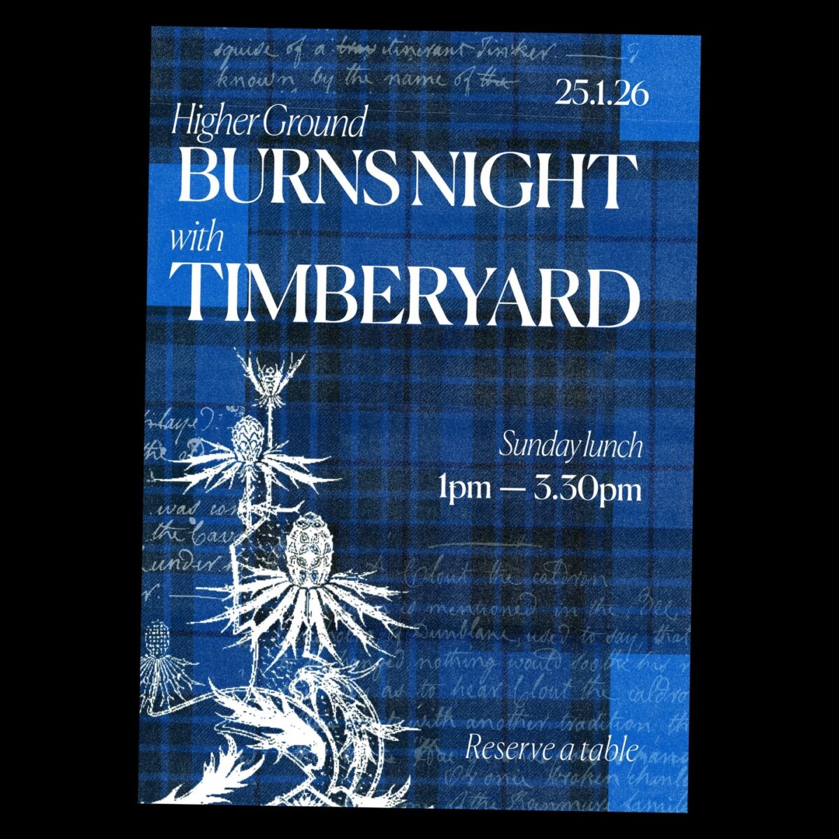 Celebrate the Scots bard with a glorious lunch at Higher Ground, in collaboration with their good pals Timberyard, the Michelin-starred restaurant from Edinburgh. Expect traditional Burns Supper dishes, a wine list curated by Jo Radford featuring special bottles from Timberyard’s legendary cellar, a fiddle player in the dining room and plenty of Scotch whisky. The menu will begin with Scottish seafood followed by a shared feast across multiple courses including a wild hare haggis ceremony. Absolute bliss.