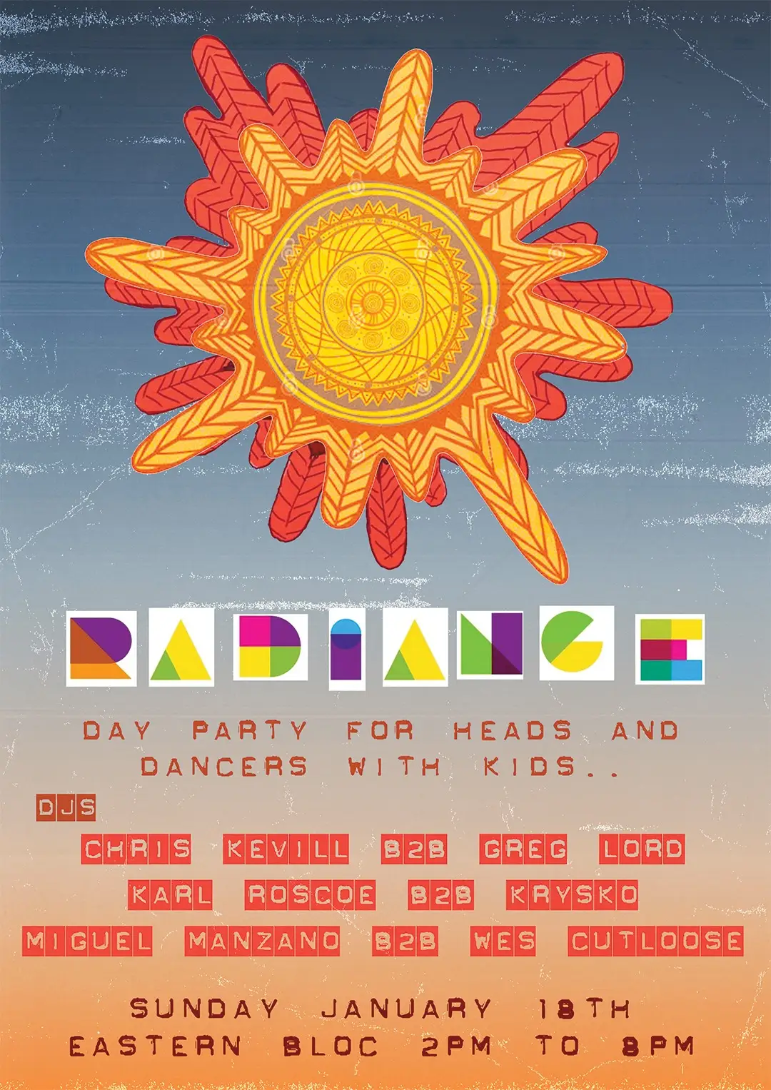 Radiance is a new Sunday day party built for music lovers and their kids, bringing the community together around the tunes that shaped them. With back to back sets from Chris Kevill, WHP resident Krysko, Greg Lord, Karl Roscoe, Miguel Manzano and Wes Cutloose, it promises a proper heads atmosphere with a family twist, turning a winter afternoon into family friendly tear-up.
