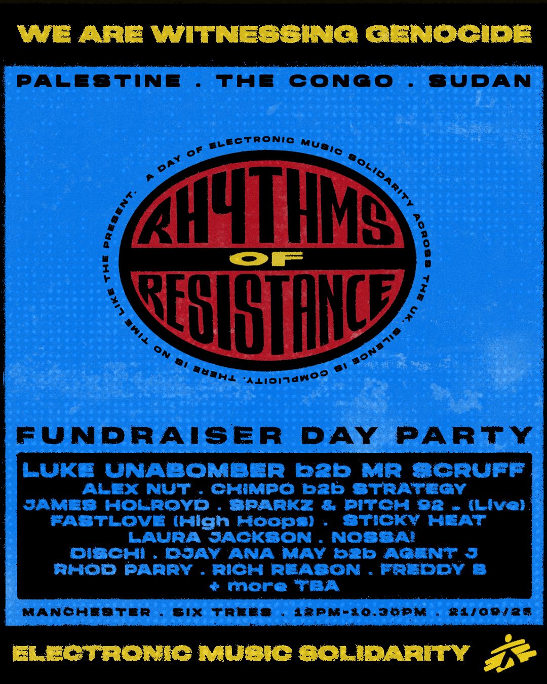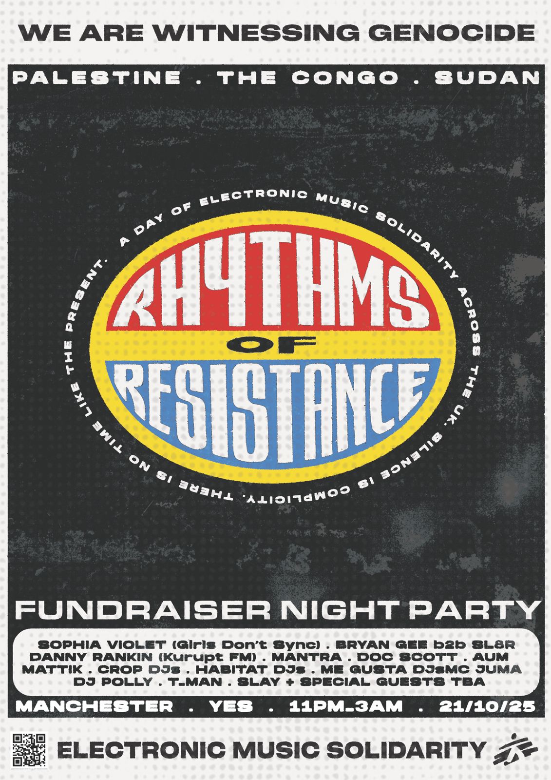 The project, Rhythms of Resistance, is about more than just music. It’s a united stand from some of the UK’s best DJs against the genocides in Palestine, Congo and Sudan. 100% of proceeds go directly to Doctors Without Borders, split between appeals for those three regions in crisis. It’s also a call for shared humanity at a time of deepening division in the UK.