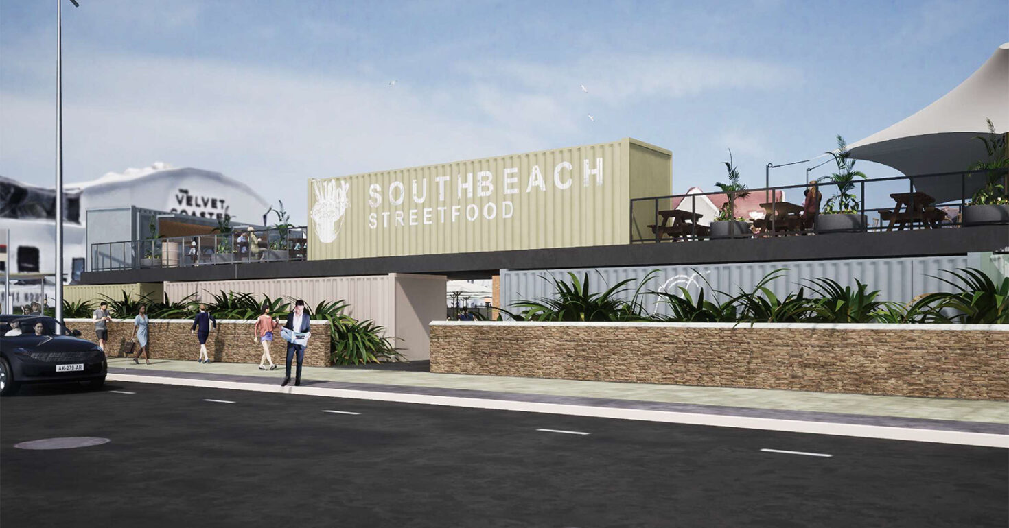 Called ‘Southbeach Streetfood‘, the plans consist of the redevelopment of the vacant site on the seafront, installing 18 shipping containers to create a space for street food and drink vendors – much like Hatch here in Manchester or Boxpark in London.