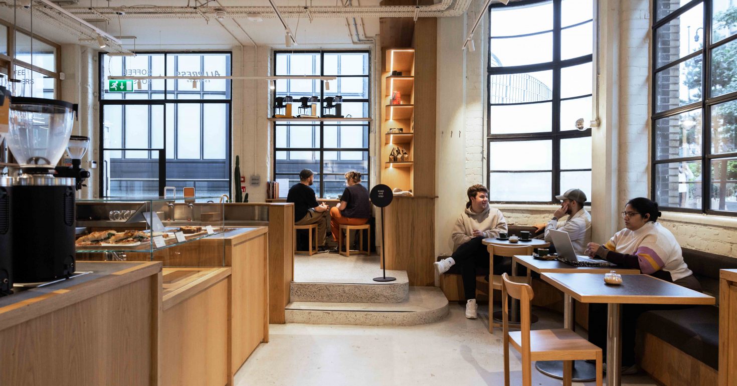 Designed by the incredibly talented Deidra Hodgson, every detail of the Manchester space has been considered when bringing the café to life. The heritage building’s original windows have been preserved, for example, and the result is an interior that really speaks to the creative spirt of our city. With ample indoor seating and natural light flooding in through those statement features it’s no wonder most people want to sit down, take their time, and drink-in this beautiful place while drinking whatever they’ve ordered from the counter itself.