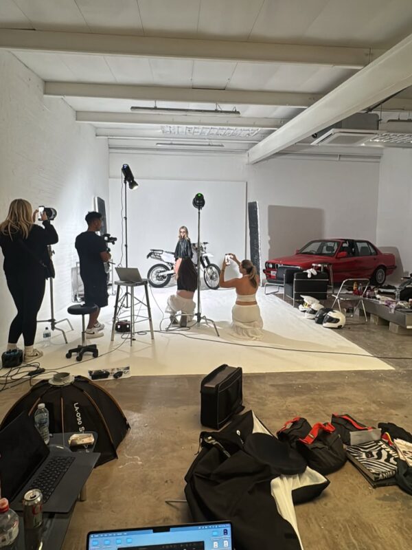 The studio’s look and feel is deliberately minimal but never sterile. There’s an energy that comes from the combination of natural light and mechanical character – thanks to the line-up of modern classic cars that share the space. ’80s and ’90s BMWs, a Mercedes, Land Rover Defender and a Porsche all live here, offering a unique creative backdrop.